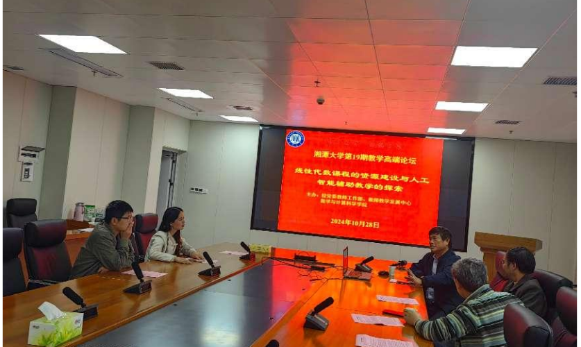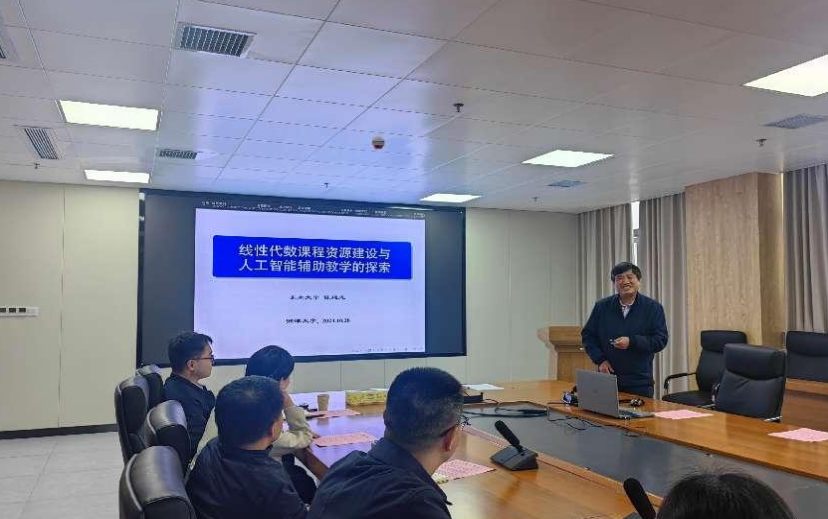 为加快推进一流学科课程建设工作,深切提高教师教育教学水平,10月28日,A片直播网 于数学楼A418顺利举办第19期教学高端论坛大会,本次论坛的主题为线性代数课程的资源建设与人工智能辅助教学的探索。论坛特邀东南大学陈建龙教授为A片直播网 老师分享线性代数建课经验,35名数A片直播网教师代表参与论坛讨论,刘红良副院长、张娟副院长出席。论坛由杨银院长主持。