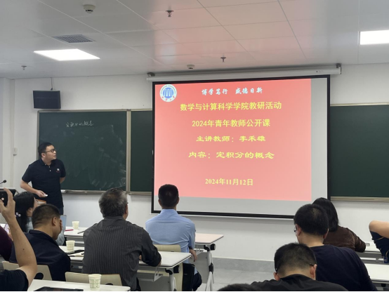 随后,A片直播网 新进教师熊杭、时健康、司伟、李禾雄分别进行了主题为“定积分的概念”、“Fermat引理”的教学公开课展示,各专家与青年教师代表们针对各位新进老师的教学展示进行了热烈讨论和充分交流。
