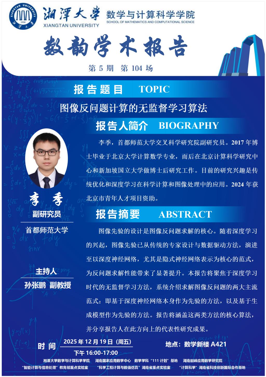 数韵学术报告-李季-图像反问题计算的无监督学习算法