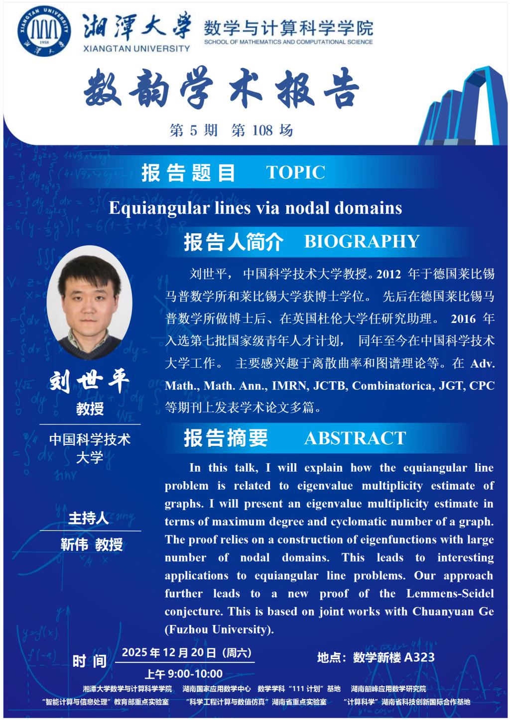 数韵学术报告-刘世平-Equiangular lines via nodal domains
