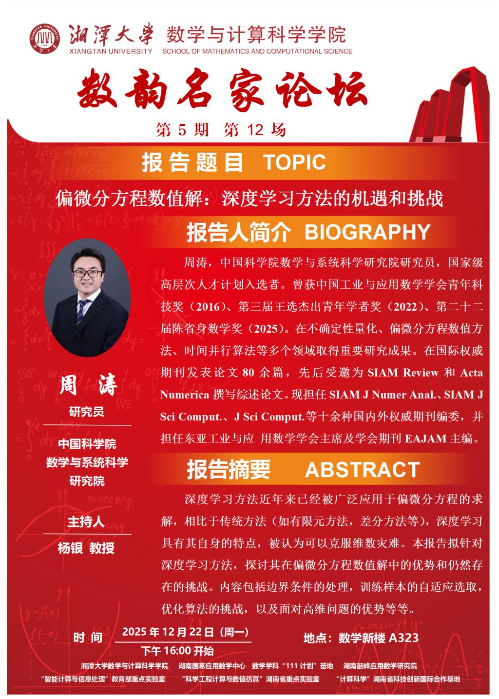 数韵名家论坛-周涛-偏微分方程数值解:深度学习方法的机遇和挑战