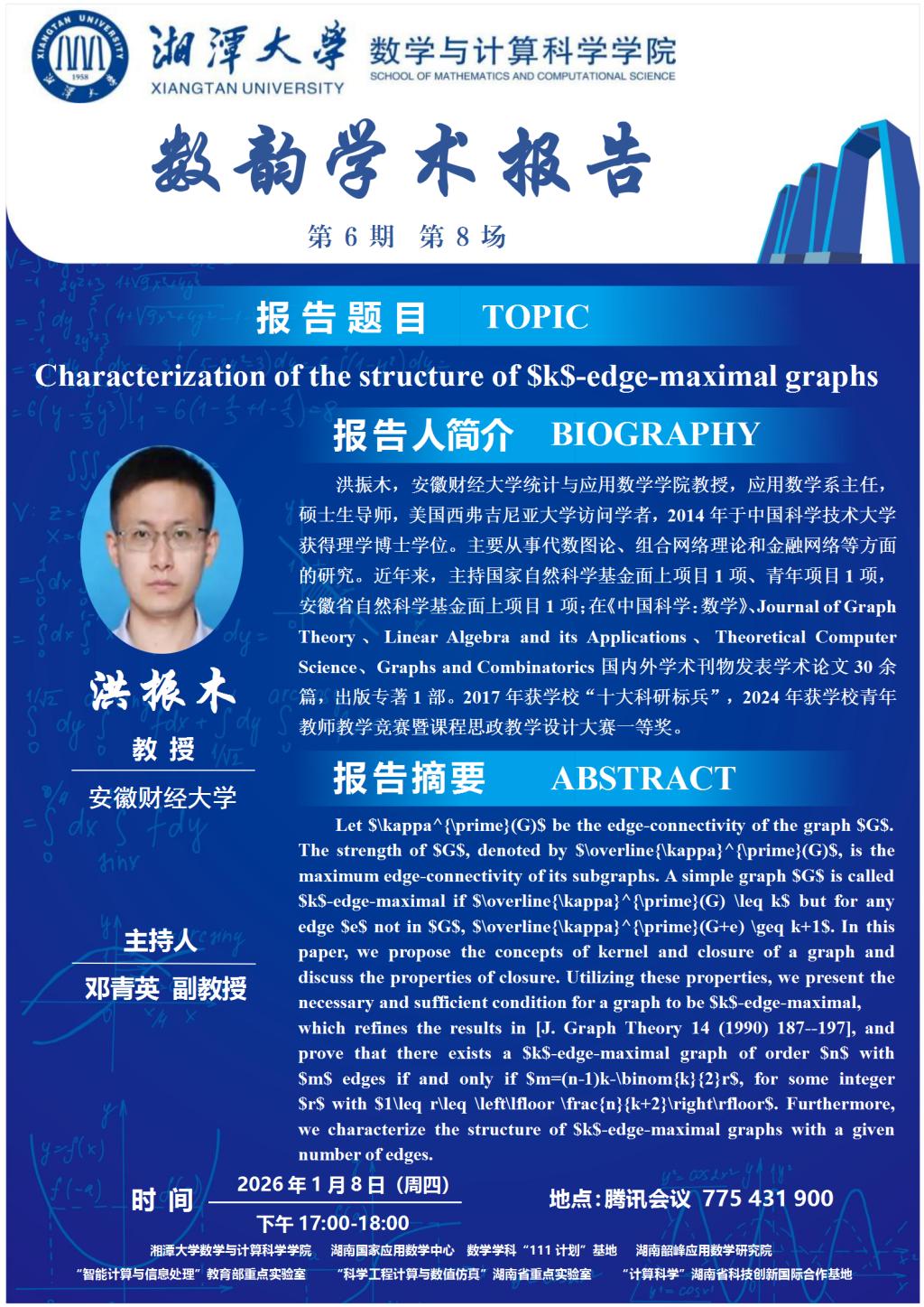 数韵学术报告-洪振木-Characterization of the structure of $k$-edge-maximal graphs