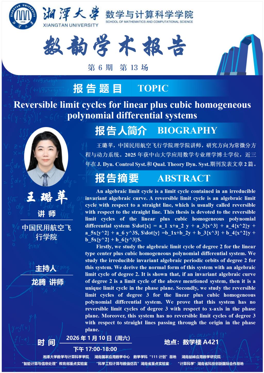 数韵学术报告-王璐苹-Reversible limit cycles for linear plus cubic homogeneous polynomial differential systems