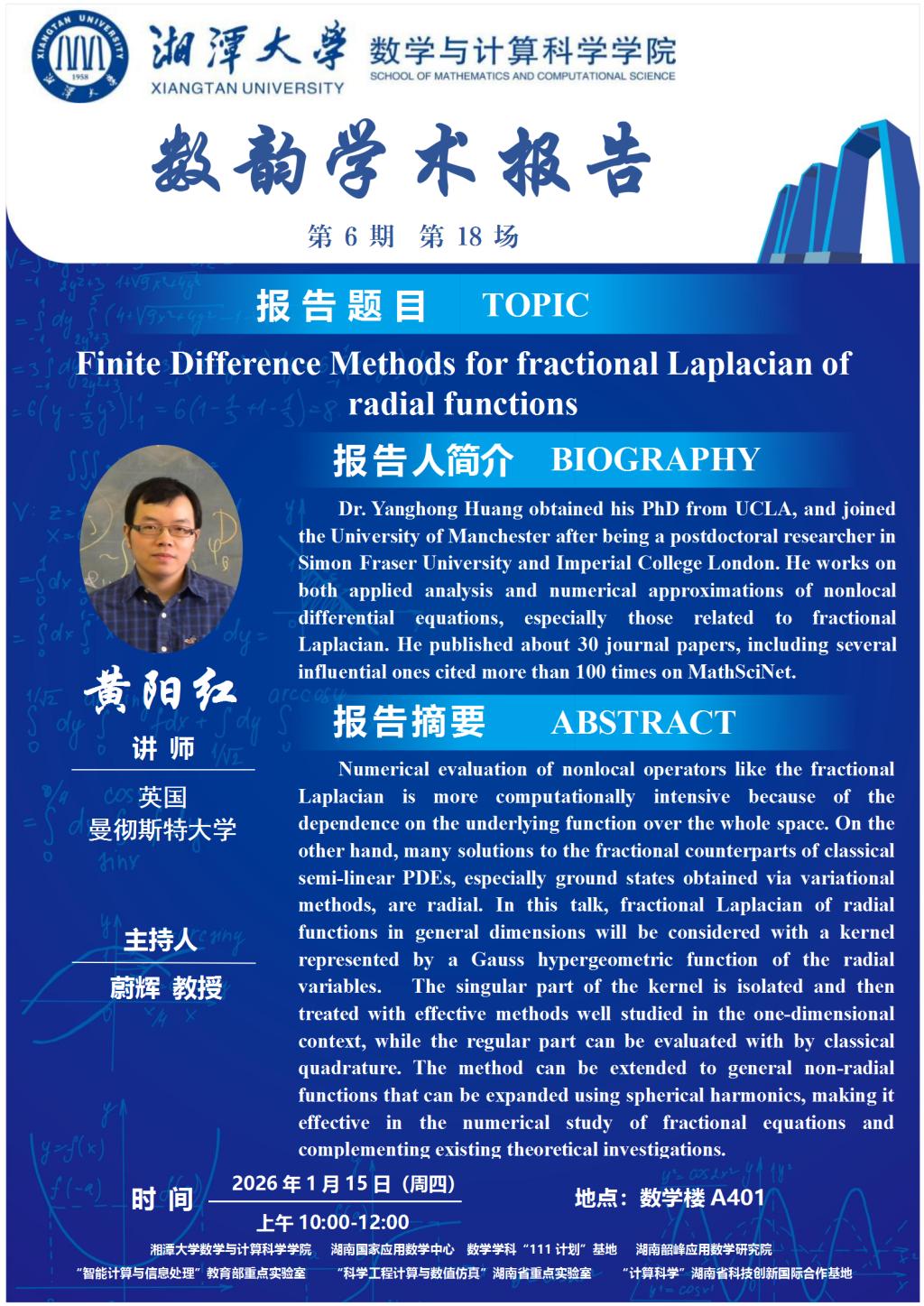 数韵学术报告-黄阳红-Finite Difference Methods for fractional Laplacian of radial functions
